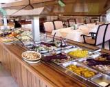 嶺北の素材をふんだんに使った料理を吉野川の流れを眺めながらゆっくり楽しめます。