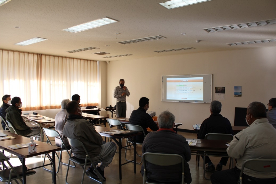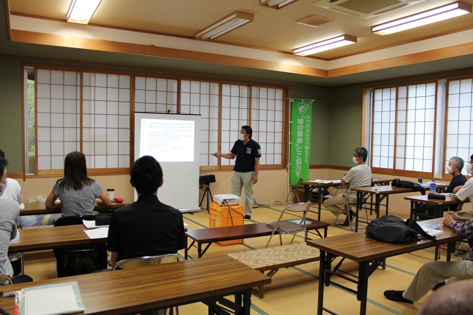 林業に関する基礎知識や森林の働き、森林ボランティアとは、危険を伴う作業を安全に行うために必要なことや緊急時の対応等について教えていただきました。