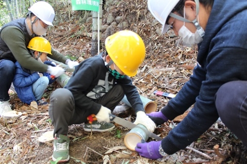ノコギリ体験で明るい森づくりを&森の木でクラフト体験