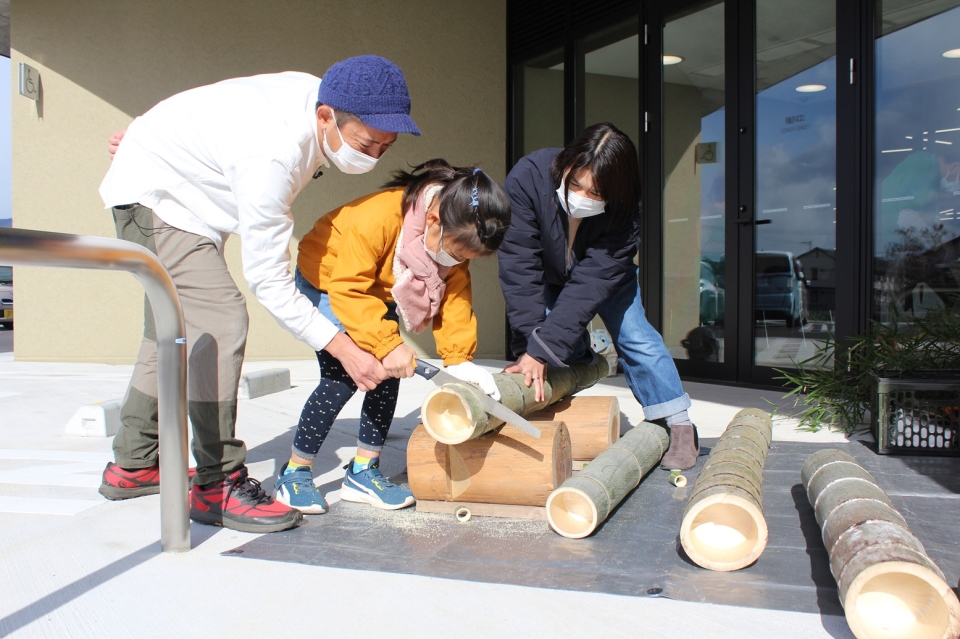 間伐材や竹を使ったモノづくりや、クリスマスやお正月など季節を感じるモノづくりができます。