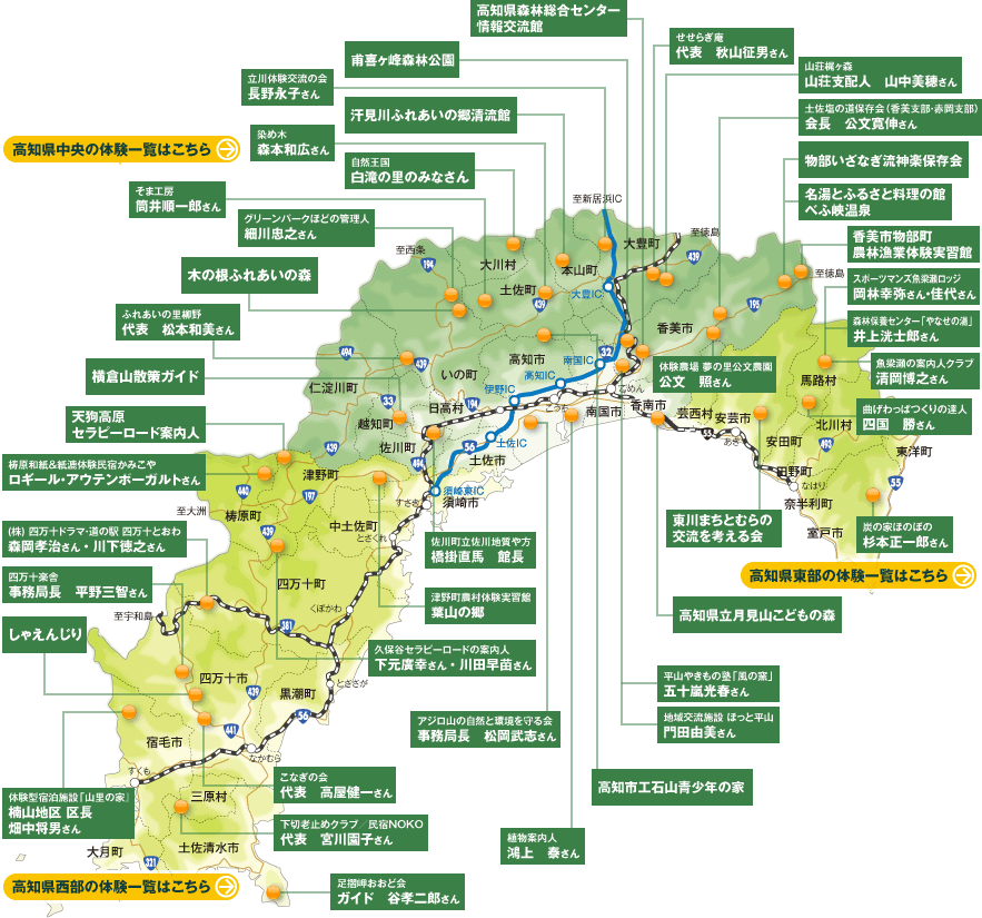地図上の体験・施設名をクリックすると詳細情報を表示いたします。