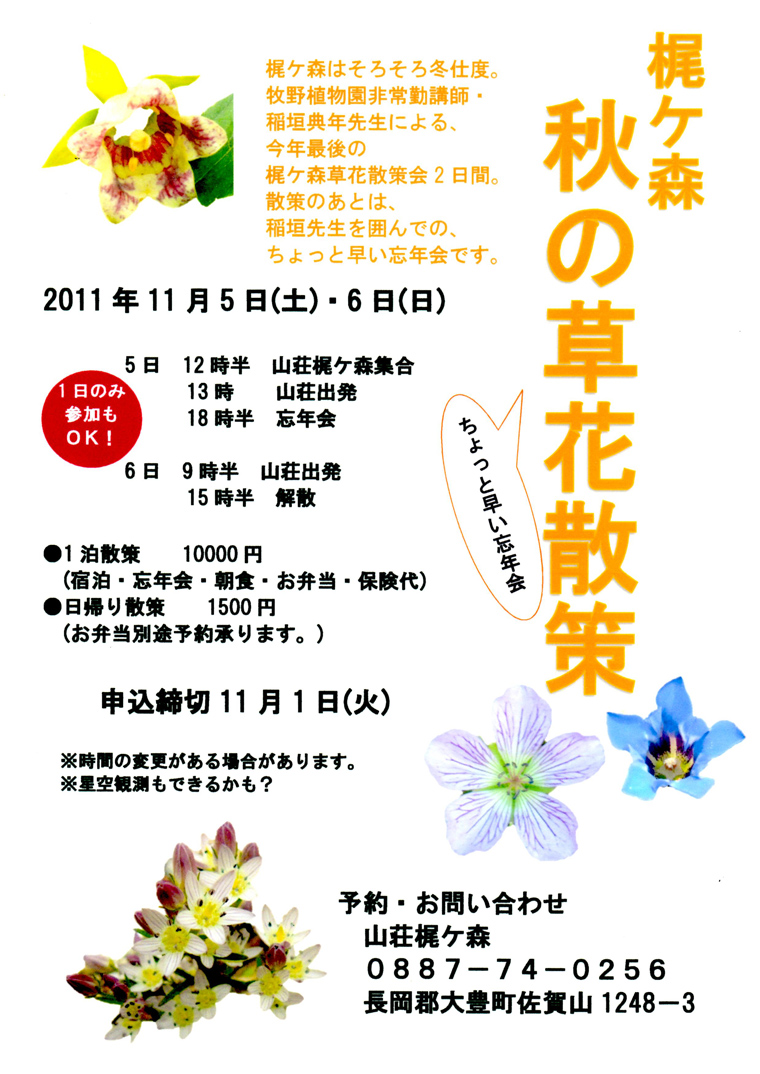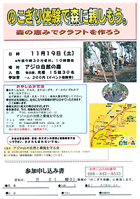 五感で自然再発見!in 梶ケ森【終了いたしました】梶ケ森ってどんな森?どんな自然が待っているのかな? ●日 時:平成23年11月23日(水・祝) 10時~14時 |