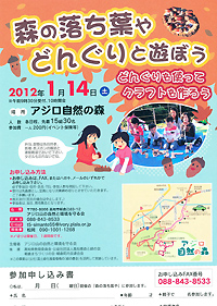 凧づくり【終了いたしました】伝統の土佐凧を手づくりします。汚れてもよい服装、あたたかい服装でお越しください。 ●日 時 平成24年2月11日(土・祝) 10:00~12:00 「きのこの森づくり」と「ピザづくり」【終了いたしました】昨年に引き続き、“きのこの森”をつくるために、ホダ木づくりを行います。 ●日 時 平成24年3月4日(日) 10:00~13:00(小雨決行) |