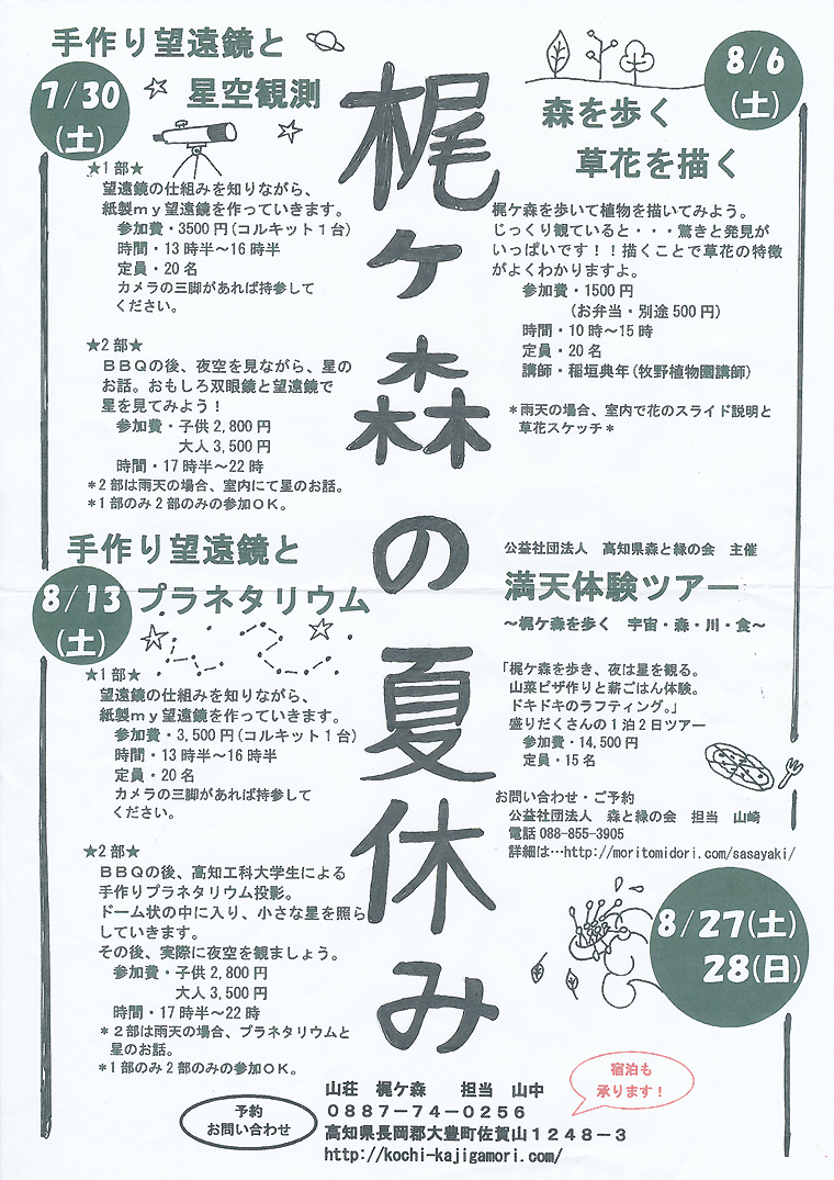 梶ヶ森の夏休み・満天体験ツアー【大豊町】 |
