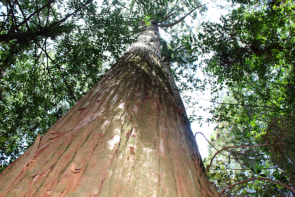 平家の伝説が色濃く残る山深い馬路村魚梁瀬には数多くの登山者を魅力する森が数多く有ります。その代表的な森のひとつ「千本山」では樹齢200年~300年・直径2メートル樹高50メートルに及ぶ、真っすぐにそびえ立つ神々しい天然杉の巨群に出会う事が出来ます。その杉の美しさは日本三大美林のひとつにも数えられ、平成12年4月には千本山登山口の天然杉が、林野庁の『森の巨人たち100選』に選ばれています。