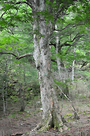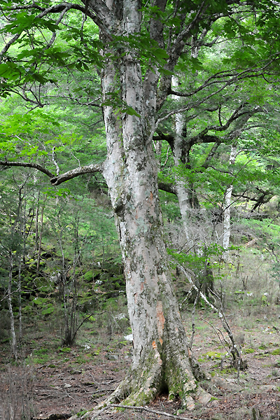登山口には白石神社と工石山荘が建っています。鳥居を潜り入山する標高1516メートルの奥工石山は古文書には喰石山と書かれた物も在り、逃げ落ちた平家が飢えに苦しみこの石が喰えるならと嘆いた事から喰石山と呼ばれ出したとも言われています。途中の登山道ではブナ林やアセビ見られ、春にはアケボノツツジ・シャクナゲ、秋にはベニドウダンの紅葉を見る事ができます。