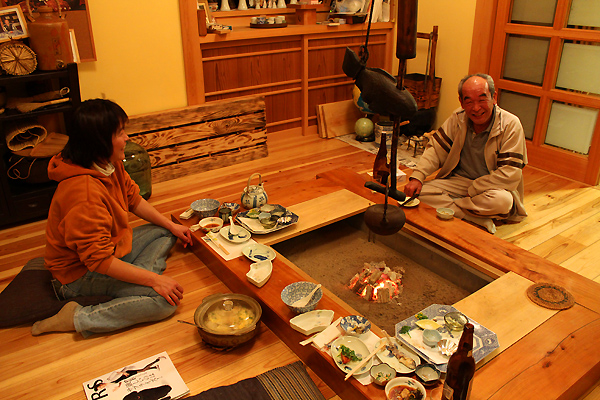広い囲炉裏を囲んで贅沢な四万十川の幸と時間を楽しむ事が出来ます。