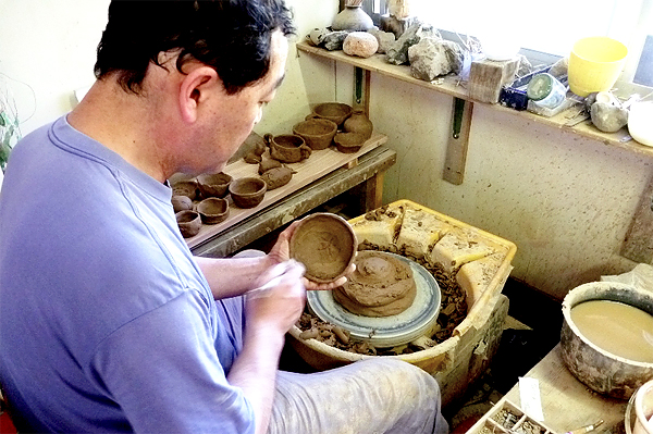 定期的な教室のようなものはありません。お互いの都合の合う日が焼き物教室の日になります。