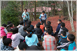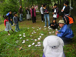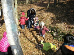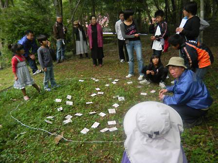 頂上付近アセビの森にて「宝探し」イベント風景