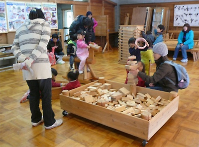 森林学習展示館では木のおもちゃなどで自由に遊ぶ事も出来ます