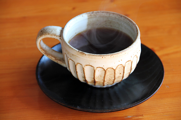 山荘内「やまなみ食堂」の湧き水コーヒーと梶ヶ森・遊山弁当