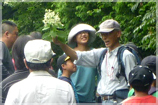 小さな草花から大きな樹木まで、多種多様な植物の名前や特徴などを、鴻上さんは静かな口調で説明していきます。色や形、大きさ、手触り、匂い、背丈や葉の付き方など様々な違いを観察。すぐには区別がつかないほど似ている植物もあれば、同じ植物でも環境により姿が大きく違ってしまうというお話には驚くばかりです。自然の中を歩きながら、少しずつ植物の世界が広がっていくのが感じられます。