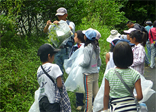 子どもたちも思い思いに草花や枝を切り取り、ビニール袋にそっと詰めていきます。しばらく外を歩くと、子供たちの袋の中にはいろいろな植物が見られるようになりました。