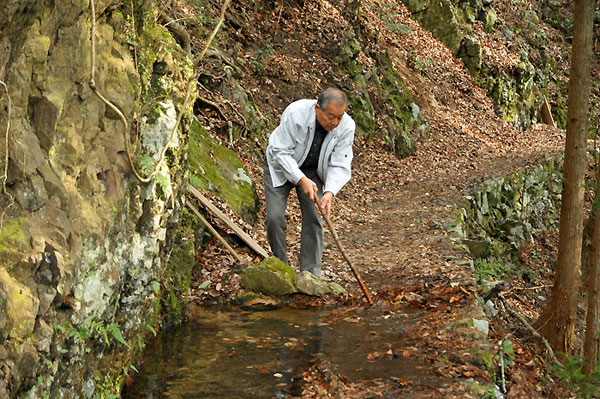 「久保谷セラピーロード」は松原地区の下元廣幸区長を中心に、地域の皆で力を合わせて整備をしてきました。「セラピーロードの認定を受けたのが平成18年3月です。それから森林環境税などの補助を頂きながら、間伐や山道の整備をして、皆で力を合わせて誰でも安全に山歩きが出来るようにしました。今でも出来るだけコースを歩くようにして、水路に落ち葉がたまるのを清掃し、雨の後は小石や枝が落ちていないか見回りします。せっかく県内外の方が久保谷セラピーロードに来て頂いているので、キチンとお出迎えしたいですね」。
