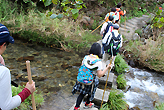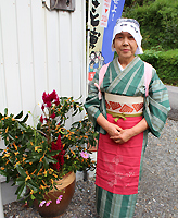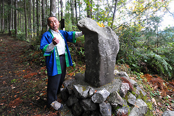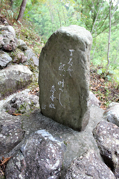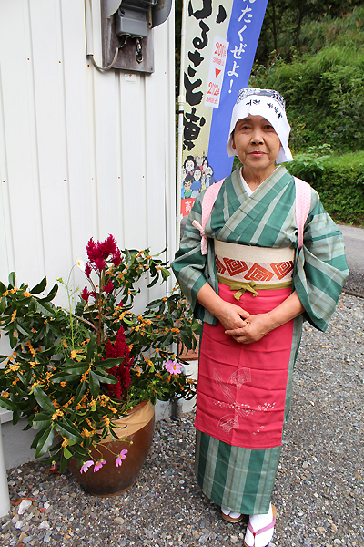 素敵な竹弁当を作られている保存会メンバーのひとり小松さん。この着物は小松さんのおばあさんが織って作られた着物だそうです。「庄谷相屋敷丁石」小松さんが幼い頃からよく遊んでいた畑に落ちて転がっていたそうです。それをどうしても起こしたいと平成14年3月に住民の方8名で建て直したのが、塩の道再整備のきっかけ。「私の30年来の思いが叶ったのよ!」と嬉しそうに話して下さいました。地元の方の愛情を感じる塩の道。丁石の隣に建てた小さな碑は小松さんがこの嬉しい思いを歌にした句。「丁石や願い叶いし春りんどう」と刻まれています。
