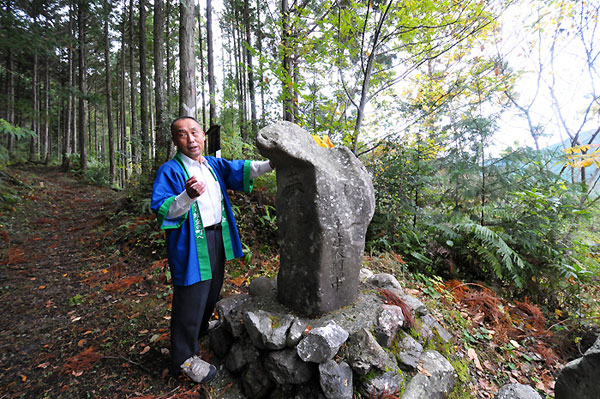 山深い物部の里のくねくね続く山道を、さらに奥へと登っていったところに、公文寛伸さんは暮らしています。公文さんの自宅周辺には、「紫翠園」と呼ばれる美しい庭園が広がっていて、紫陽花や山吹など自然の花々が四季を通じて楽しめます。この庭は、生まれた土地で年を取っていきたいという公文さんの夢のカタチでもあるのです。自然を愛し、故郷を愛する公文さんの次に向かった夢が「塩の道」でした。「塩の道」とは、香南市赤岡町と香美市物部を結ぶ約30kmの、山と海を結ぶ峠越えの道のこと。公文さんが「塩の道」に出逢ったのは平成14年。物部村の庄谷相に、昭和の南海地震で倒れていた石があり、土地の持ち主から「これを起こしてみてくれないか」という依頼が、仕事を辞めたばかりの公文さんにありました。その呼びかけに応え、住民有志8名で建て直したのが「塩の道」再整備のきっかけとなったのです。
