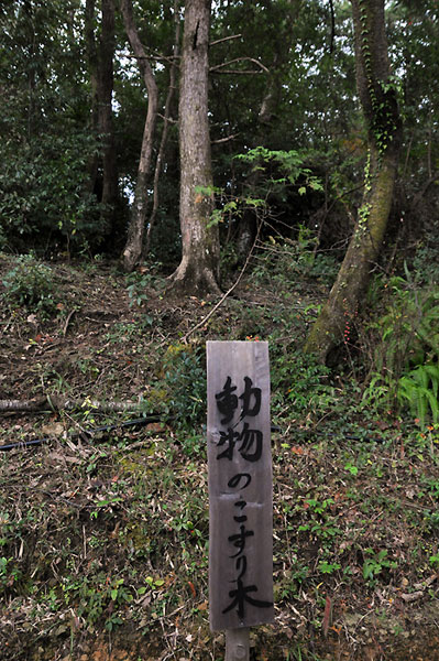 猪が木に体を擦りつける場所があります。 |