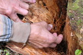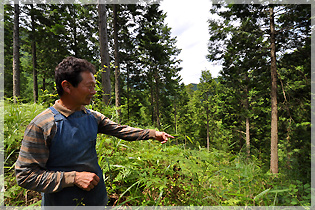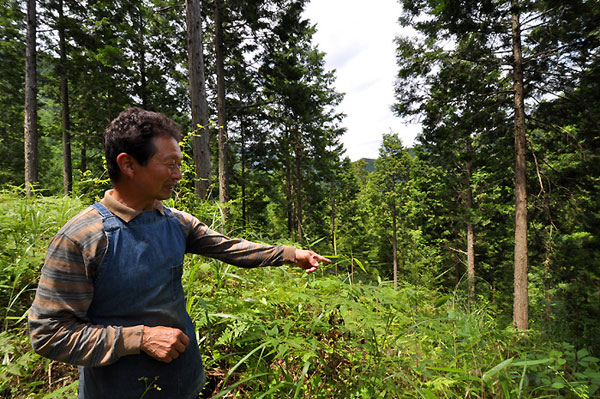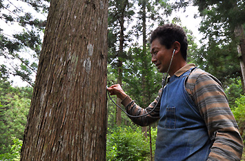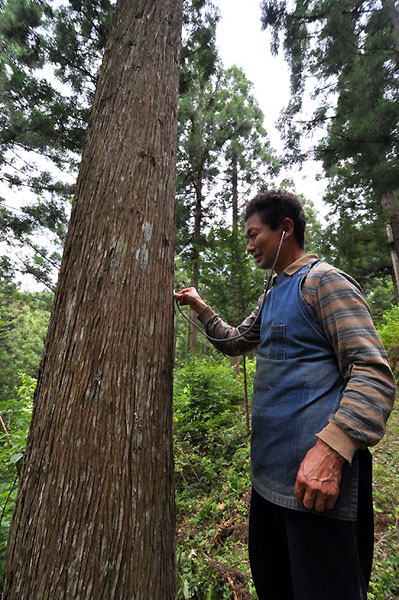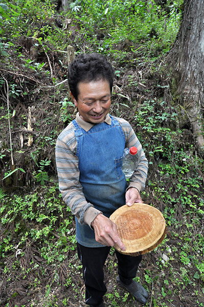 植林から育林、伐採まで一人で行っているので、木の年輪を見れば、その成長具合がわかります。 |