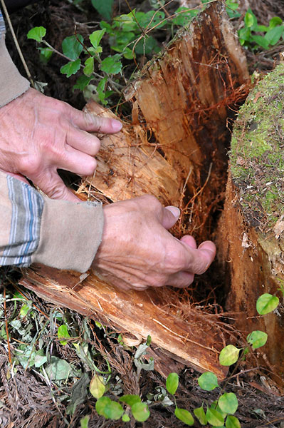 間伐された木の根は、まわりの木に養分を提供します。 |