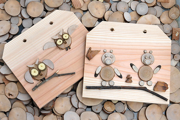 また、枝うちされた木や間伐材などを使い、プランターやマガジンラック、鳥の巣箱など木工品を作っています。これも味がある作品たちで、地元の子どもたちや県内外の団体などを中心に、指導しています。(筒井さんの作品は、道の駅土佐さめうらでも販売中!)山で集めた小枝、間伐材、製材で出る木、子どもたちの年齢、作りたいものに合わせて、準備をしてくれます。