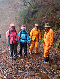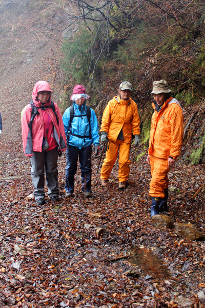 山の話しを聞きながらのんびり林道トレッキング。 |