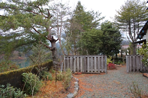 広い庭からは魚梁瀬のダム湖が一望。 |