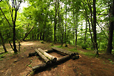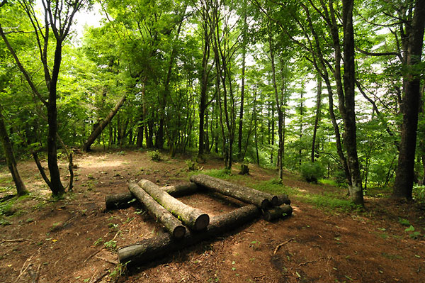 まず森林セラピーロードが初めての方に薦めているのが、天狗ヒメシャラ・引割りロードの一部です。片道約1km地点で、太陽の日がこぼれ、緑のフィルターを通した優しい光が照らす広場に、丸太の木を組み合わせたベンチがある場所まで。往復約2kmを、参加者は約2時間を目安に歩いています。
