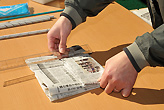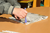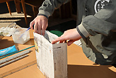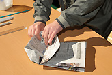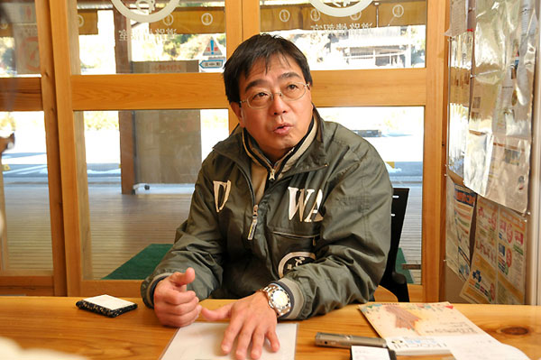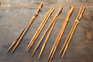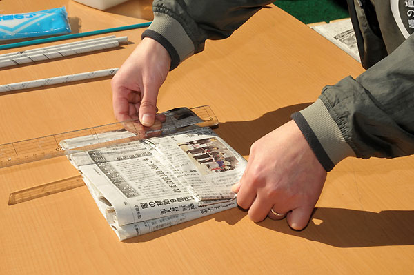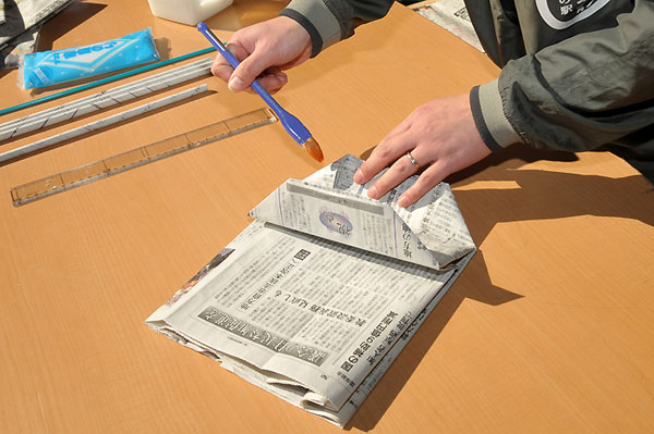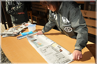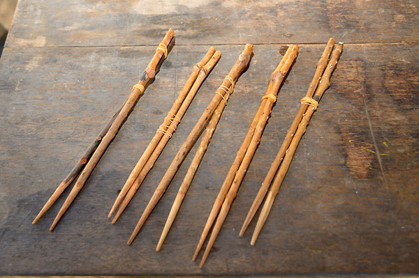 天然木で 「マイ箸作り」を担当する川下徳之さんがインストラクターをはじめたのは3年前。四万十川にあこがれて13年前に移住し、「道の駅四万十とおわ」を運営する株式会社四万十ドラマを手伝うようになりました。7、8年ぐらい前から四万十川の汚れを目にし、「これは何とかせないかん」と思うように。その一環として、箸作りや新聞バッグ作りに携わるようになりました。箸作りでは2時間のコースの中で、まずは環境についての話をたっぷりとします。日本の割り箸は98%が中国からの輸入で、250億膳も使われているということ。中国で2万軒くらいの家が建てられる木がわずかな時間で捨てられていく。