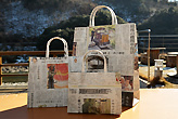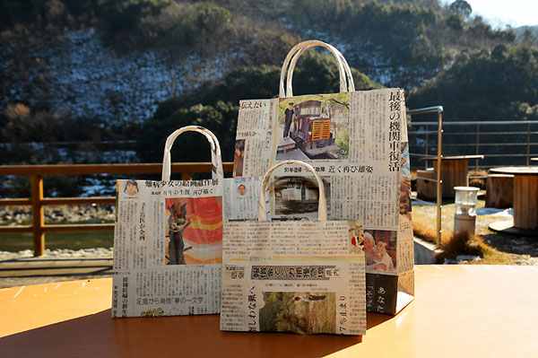 地産地消、交流、地域振興の拠点などの通常の道の駅の役割にとどまらないのが人気の秘密。例えば、新聞を再活用する運動を四万十川流域からはじめようとつくった「四万十川新聞バッグ」。流域に暮らす主婦のアイデアで古新聞を再活用し、エコでオシャレな商品に生まれ変わらせました。レジバックとして販売すると瞬く間に品切れに。アメリカやイギリスにも輸出するほどの人気商品となりました。「自分の手でつくりたい!」という人のためにワークショップも開催しています。