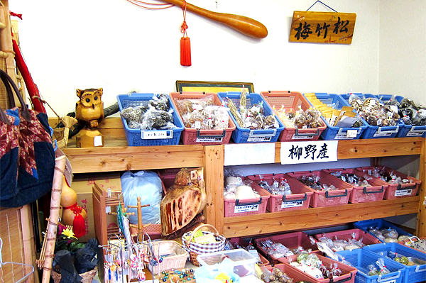 地区への入り口にある建物では、地元の新鮮な野菜などの農産物や加工品の販売、そば打ちや、こんにゃく作り、炭焼き(木炭・花炭づくり)などの体験などができます。