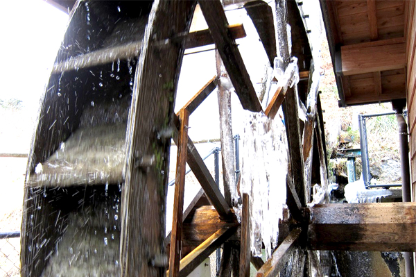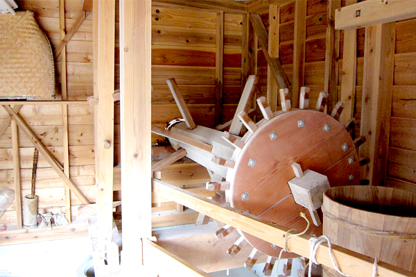 小屋の中には石臼等があり、水の力を利用し昔ながらの精米や、製粉が行われています。