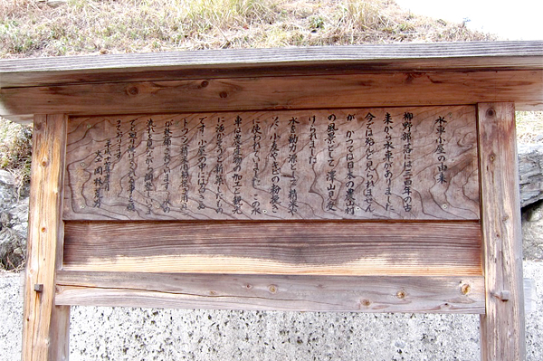 「柳野部落には3百年の古来から水車がありました。今ではほとんど見られませんが、かつては日本の農山村の風景としてたくさん見受けられました。