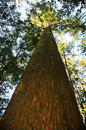 千本山保護林は樹齢200年から300年前後、天然の巨大なスギをはじめ、ヒノキ、ブナ、トガサワラなどが残っています。清岡さんたち「魚梁瀬山の案内人クラブ」は山のガイドだけでなく、魚梁瀬の豊かな森のこと、歴史のこと、そして森を守り再生していくために必要なことなどを、歩きながらささやいてくれます。