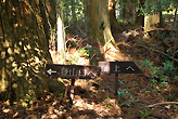 親子スギの前にある保護林の看板。 |