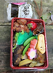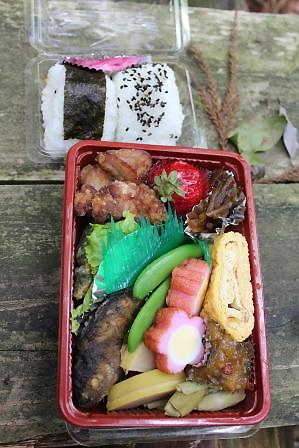 魚梁瀬の山菜・あめごなど地の物がいっぱい詰まった手作りの登山弁当が食べる事が出来ます。 山歩きにぴったりの味とボリューム、山のお共にどうぞ